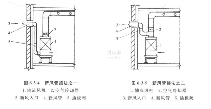 (1)利用冷風機的通風機作為吸入新鮮空氣的設備,其新風管與冷風機的連接方法有兩種。