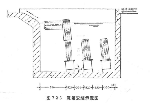 (2)制冰水池 它是容納指形蒸發管沉箱與制冰用水的冰池,應維持一定的水面,以滿足制冰和浮冰的需要。