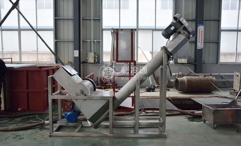 碎冰還可利用皮帶運輸機、螺旋輸送機以及壓縮空氣輸冰裝置來輸送。空氣輸冰裝置由鼓風機、空氣冷卻器、進冰器和管道等組成。鼓風機需要較高風壓,一般為70~80kPa。當每小時輸冰量為30t時,需要風量為0.5m3/s,為了減少鼓風機排氣的噪音,輸冰裝置里設有消音器,設計采用水冷卻的室氣冷卻器是為了降低空氣溫度。輸冰管道采用鉛管或不銹鋼管,管子彎曲半徑不應小于1.5m,應防止連接處積冰,碎冰從進冰器上部進入后,隨壓縮空氣往管道輸送,其輸冰直線距離可達300m,輸送高度可達30m。