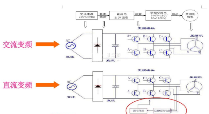 在變頻空調中又可以分為“交流變頻”與“直流變頻”兩種形態: