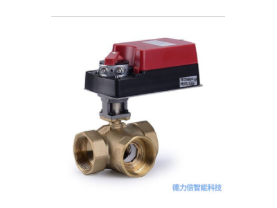 德力信DN50角行程比例積分三通球閥帶有手動(dòng)執(zhí)行器短接按鈕。-5至121°C工作溫度。適用于中央空調(diào)、供熱冷熱水系統(tǒng)、蒸汽加濕等。