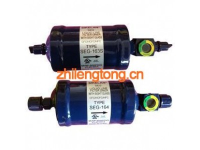 SEG系列帶視液鏡管用干燥過濾器,在過濾器出口直接焊有一個視液鏡。該過濾器采用3A分子篩,能有效吸收水份、CFC、HCFC以及HFC制冷劑。過濾介質能將小至10微米的雜質從制冷劑中分離出去,以免造成噴嘴管道的堵塞。該組合裝置減少焊接面積,節約了時間,降低了潛在的滲漏可能。可以使技術人員觀察到制冷劑在系統中的現狀,幫助鑒定供電系統是否有不良氣流通過冷凝器管路,可避免不正常壓力降引起的制冷劑氣泡現象。視液鏡內置一個指示器,提供易分辯的綠色和黃色指示器來監控制冷劑中的水份含量,并提示是否需要更換的服務。