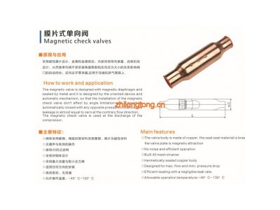 膜片式單向閥采用磁性膜片設(shè)計(jì),金屬和金屬密封,內(nèi)部采用導(dǎo)向裝置、自吸機(jī)構(gòu)設(shè)計(jì),從而使單向閥不受安裝角度限制和反向壓力大小的關(guān)系影響閥門的自動(dòng)閉合,逆向近乎零泄露,用于壓縮機(jī)排氣管路上。