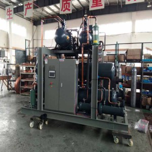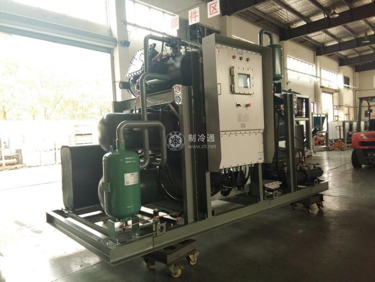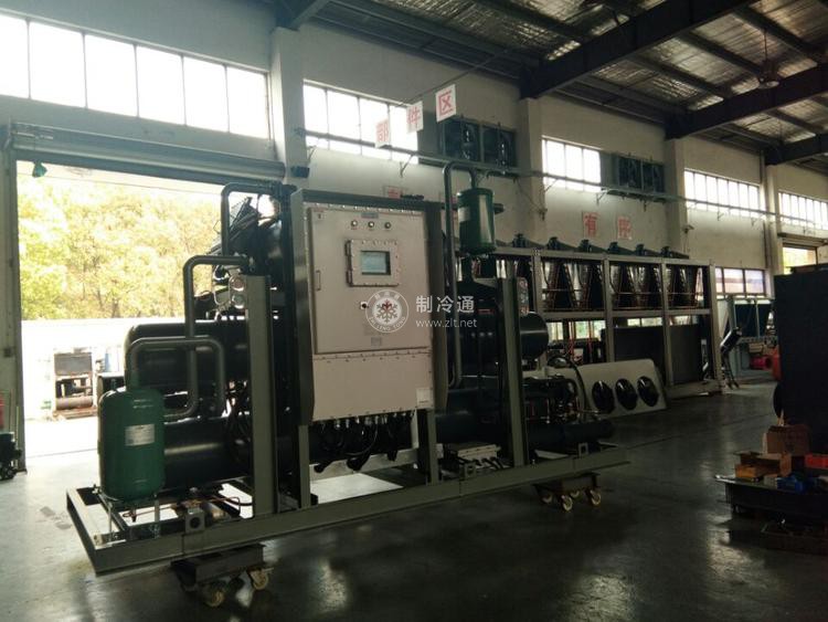 復疊式冷凍機組由高溫部分和低溫部分組成.其低溫部分提供所需的深冷能力,采用R13、R23等低溫制冷劑,但這類制冷劑的冷凝溫度要求很低,同等壓力下用冷卻水難以將其冷凝。復疊式冷凍機組高溫部分使用中溫制冷劑循環,其作用是用于冷凝低溫制冷劑,高溫部分和低溫部分共用一個蒸發冷凝器而“復疊”,從而組成應用兩種制冷劑的復疊式制冷循環。同時又可稱作為:復疊式冷水機,乙二醇冷凍機,酒精冷凍機,復疊壓縮冷凍機,復疊壓縮式冷凍機。