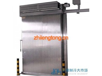 門板:使用聚氨酯與面板整體發泡,外觀平整,并做冷橋設計,保溫性能好。面板可根據要求選用彩鋼、不銹鋼、壓花鋁板等。此門也可在大門上另開小門,以方便人員常規進出。